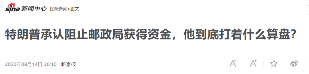 今年8月,民主党因为支持者可能大量采用邮寄选票的方式投票,所以提出议案准备给美国邮政系统增加250亿美元的经费,以提高邮政局工作效率,但是这个议案被川普毫不犹豫地否决了。
