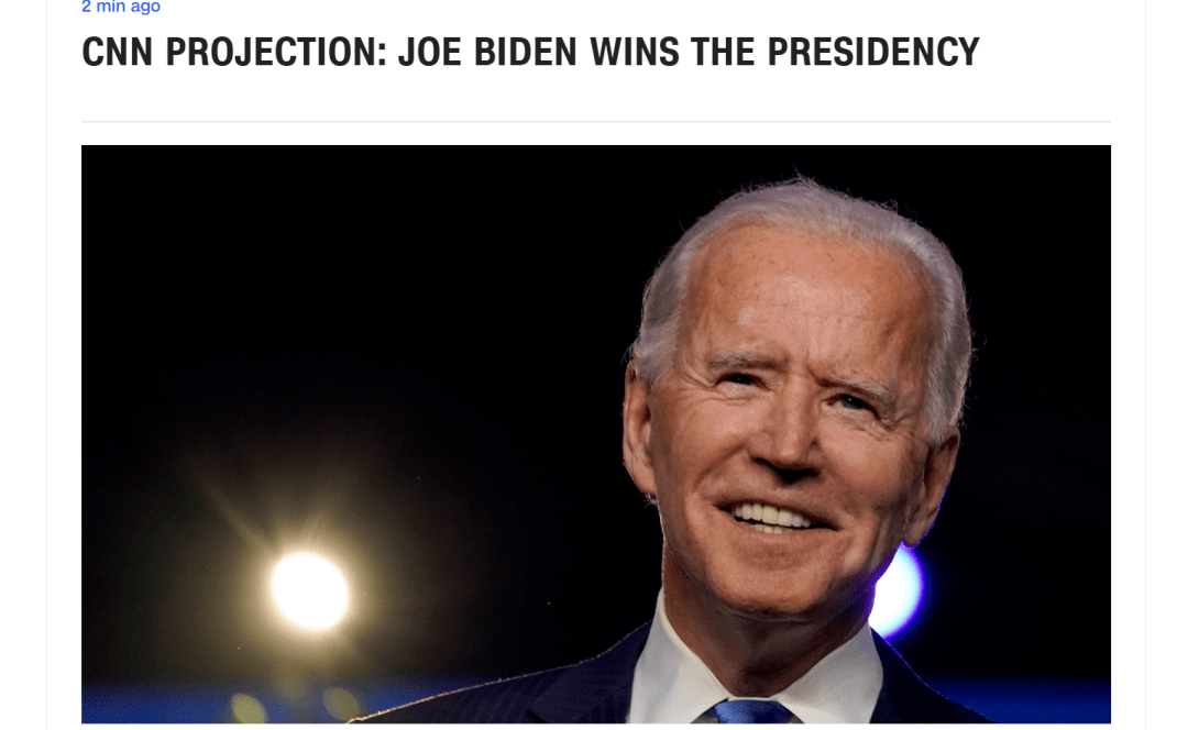 今天早上一醒来就看到各大媒体标题是:拜登当选美国总统!