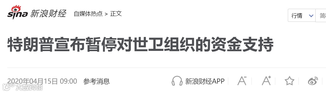 4月10日,特朗普再度出马指责世卫组织,这一次连世卫组织不作为都懒得提了,直接指责其听命于北京,对美不公平,并且透露将在下周决定是否终止对世卫组织的资金支持。