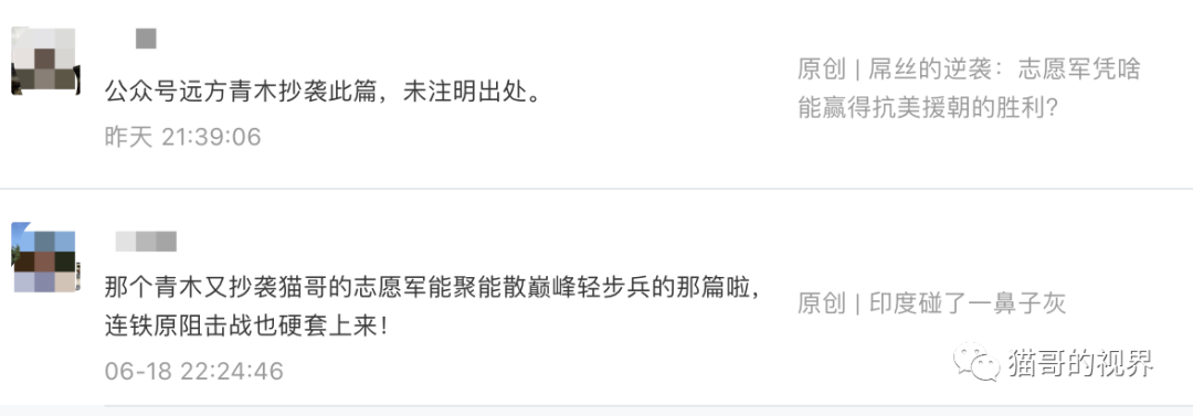 周四粉丝和助理都发消息告诉我,公众号"远方青木"6月18日的文章《印度人,你挑战的是人类轻步兵的巅峰》又在洗稿了。