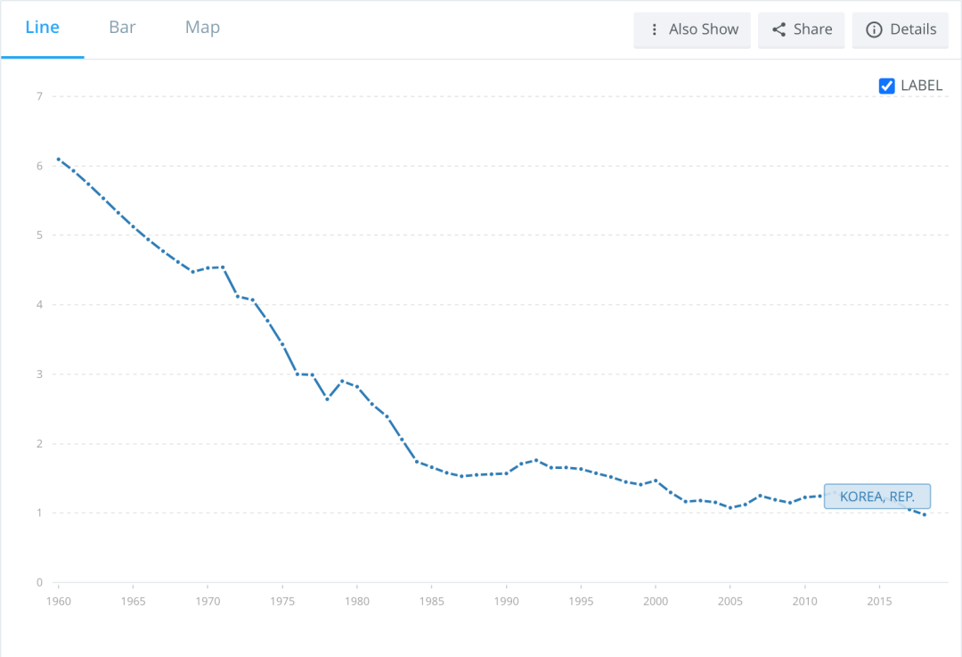 这种献祭式的追赶,让韩国创造了震惊世界的江汉奇迹,也创造了全球倒数第二的生育率,韩国急速冲向老龄化。而日本、中国的老龄化也日渐令人担忧。
