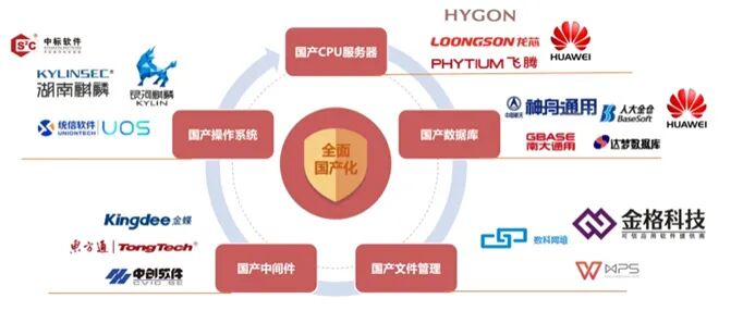 在上层政策的引领,以及企业、机构大规模的研发投入之下,我国信创行业逐步建立起,从上游芯片到下游应用的替代产业链条,关键环节如国产CPU (鲲鹏、海光、飞腾等)、国产操作系统(麒麟、统信等)、国产应用软件(金山、用友等)等已实现较好的突破,以基础支撑软硬件为主的前两个阶段的信创发展,目前已经相对成熟和完善。