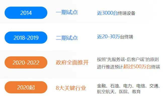 自2020起,党政军,金融、石油等9大领域将重点开展第三阶段的信创建设,该阶段重点是应用软件的全面适配,包含办公、ERP、财务软件等。