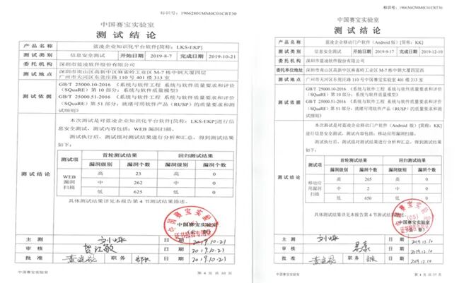 在安全保障上,蓝凌已获得中国赛宝实验室的安全检测认证。