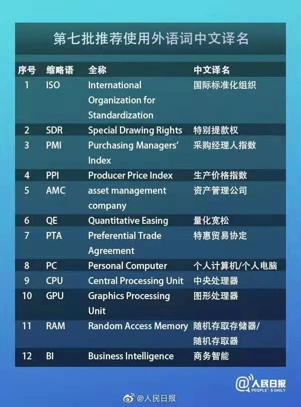 近日,教育部公布了第八批向社会推荐使用的外语词中文译名,APP、NFC、MPA都有标准中文译名啦!