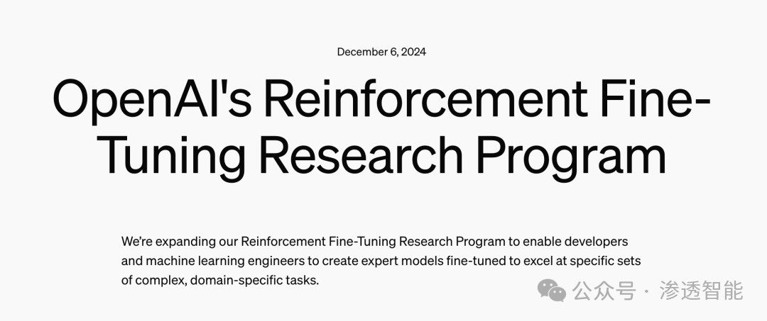 OpenAI在直播发布的第二天,实际上更多的是在“画饼”。在直播中,他们展示了强化学习微调技术(Reinforcement Fine-Tuning, RFT),该技术使用户能够通过少量数据,利用强化学习来优化模型的推理能力,从而显著提升模型在特定领域的专业表现,实现高效的领域专家模型微调。目前,这项功能仍处于alpha测试阶段,预计将在明年年初正式上线。
