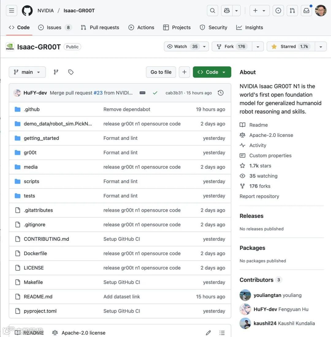 近日,我们收到了大量社区对我们开源的GR00T N1项目的积极反馈!欢迎大家访问我们的GitHub页面,点赞、fork并贡献代码。让我们携手共进,一步步解决通用智能机器人的难题。