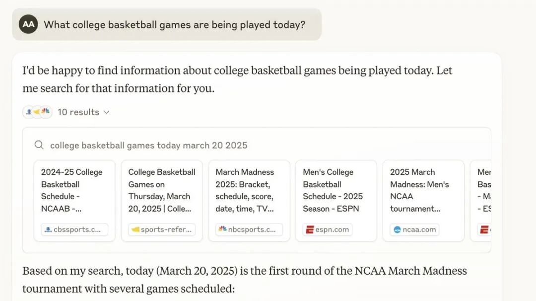 这种新的搜索能力不仅提高了 Claude 的实用性和交互性,也使其能够更好地应对实时信息需求。例如,在回答涉及当前事件或最新科技动态的问题时,Claude 能够提供更为全面和及时的答案。