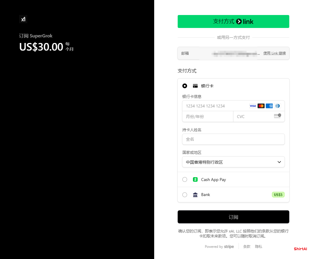 Super Grok 的费用是 30 $, 你通过支付宝给虚拟卡充值30美元即可,不需要额外多充值。