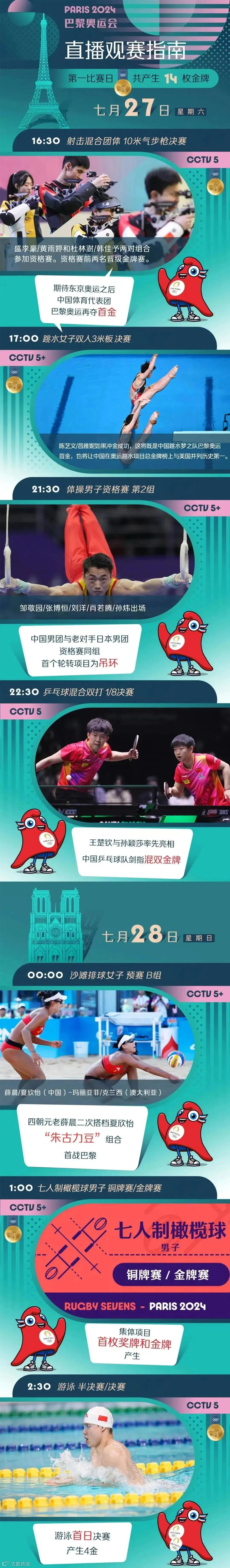 第一比赛日中国射击队将为中国体育代表团打好巴黎奥运第一枪。