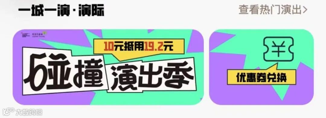 192用户专属购票福利——95折看演出还能叠加10元抵用19.2元优惠券!演出剧目多多:《繁花》《爱情神话》《永不消逝的电波》等等尽在一城一演~