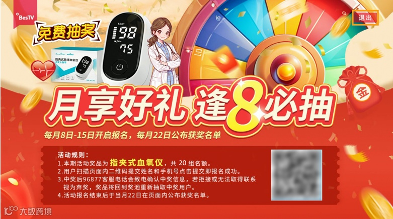 随时随地随身检测,无创测血氧脉率,免除传统血气分析有创带来的痛苦和烦恼,轻松掌握血氧数据!奖品数量有限,先到先得~