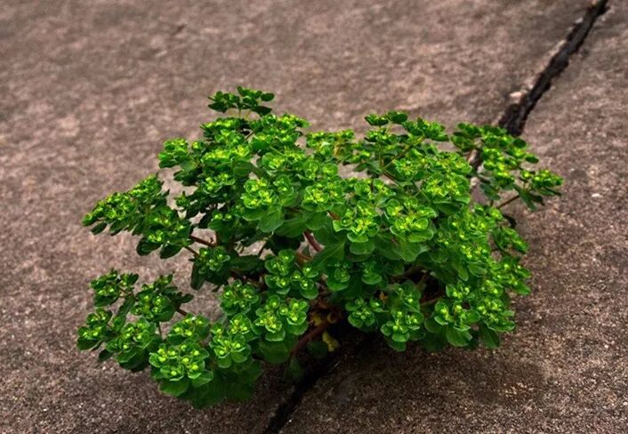 这是怎样的生命呀,在盆景因失去关注而渐渐失去光彩,走向衰亡的时候,她却抓住这一空隙,怒放生命,蓬勃生长自己。是的,如我关注到位,她或许会在不起眼的时候就被除掉了。毕竟,那是盆景的天地,她不属的生命终究破坏了那份雕琢的美丽。可几天的功夫,她无畏惧水分缺乏,把住契机,把自己长得如同盆景一般高大,欣喜地张扬生命。