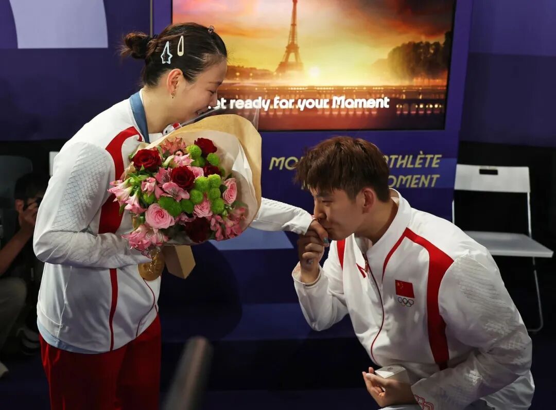 巴黎奥运会羽毛球混双颁奖仪式结束后