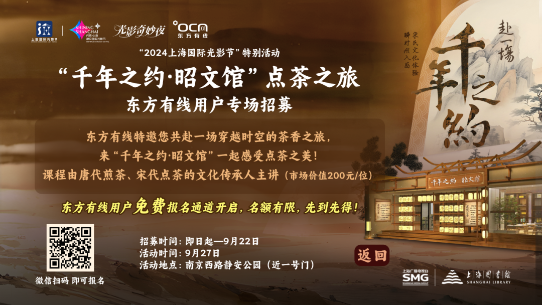 9月27日,东方有线特邀您共赴一场穿越时空的茶香之旅,来“千年之约·昭文馆”一起感受点茶之美吧!