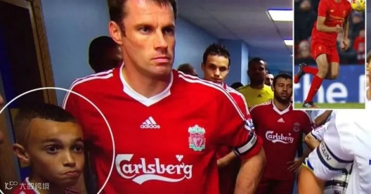 这张照片是阿诺德在利物浦比赛时充当球童的瞬间,严谨的卡拉格领着这位红军未来之星出场。