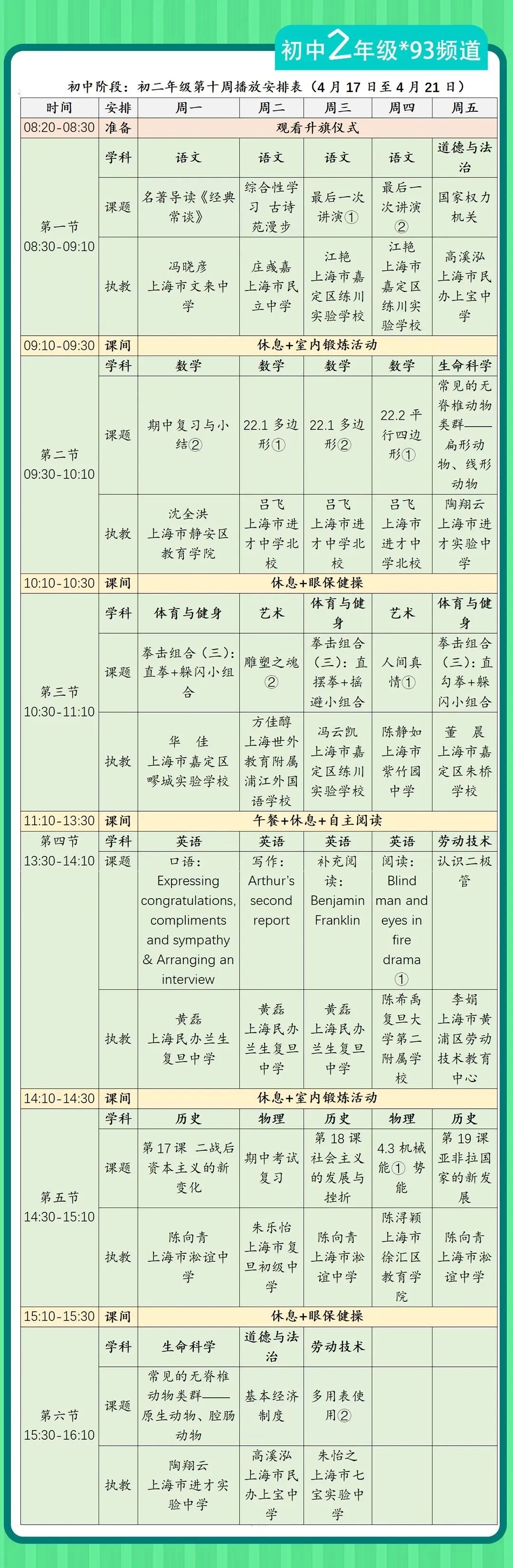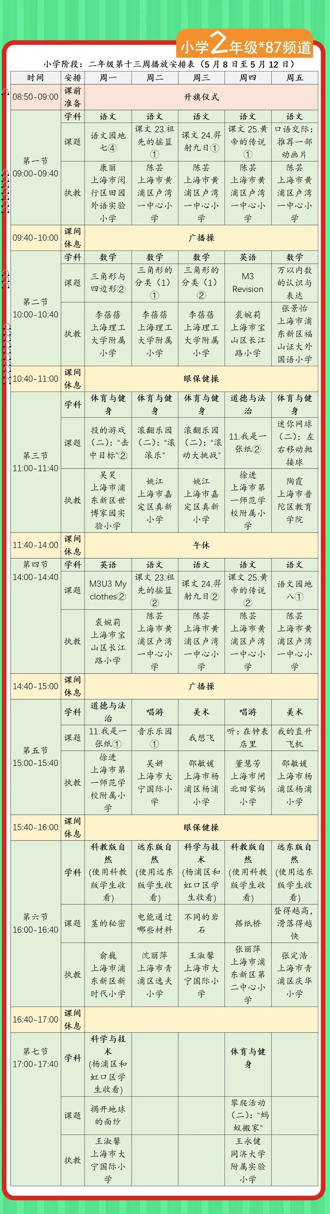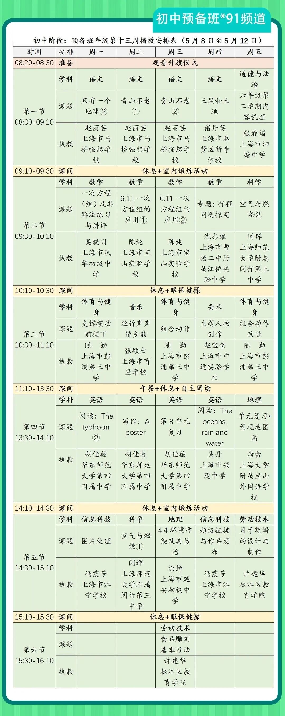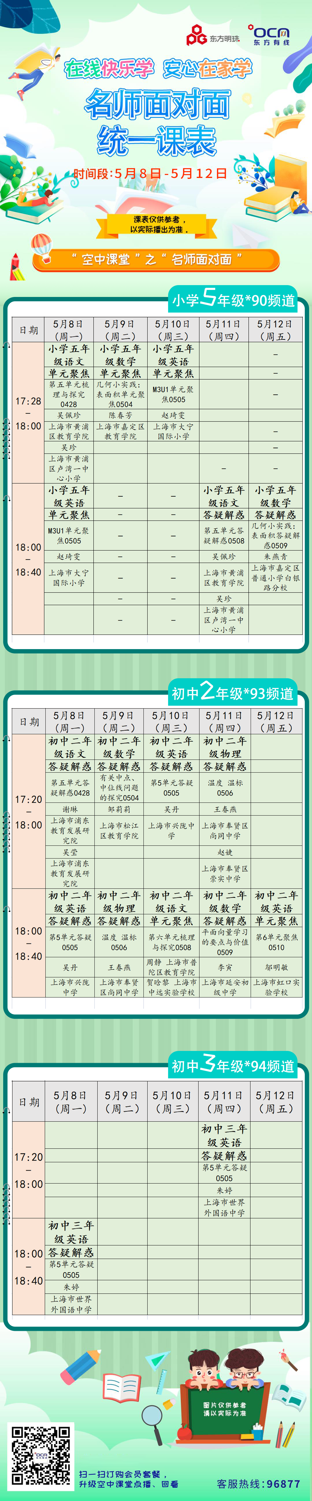 空中课堂丨空中课堂&名师面对面统一课表(5月8日-5月12日)!