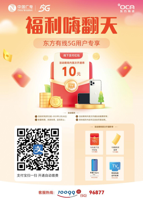 红包仅限办理东方有线5G业务(192号段)费用线下支付时使用