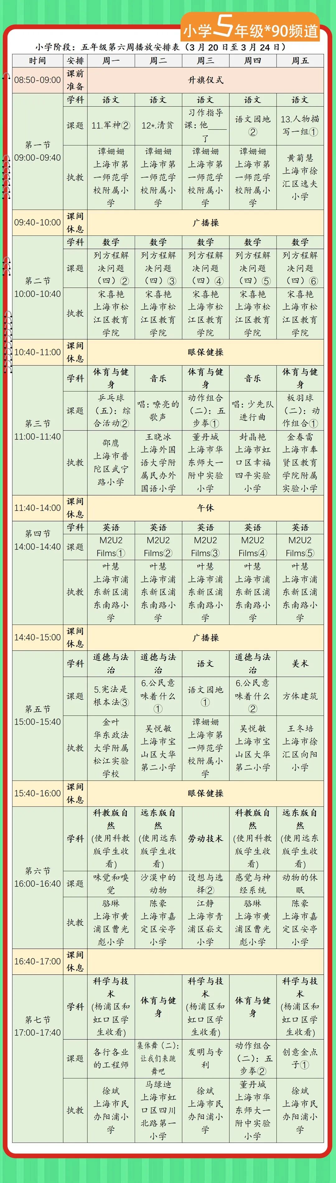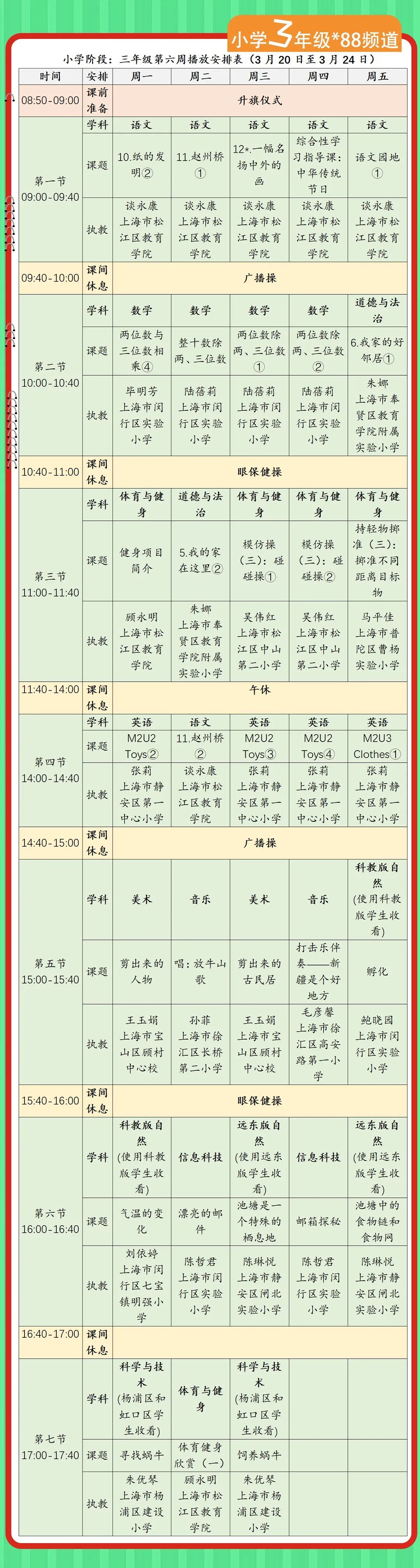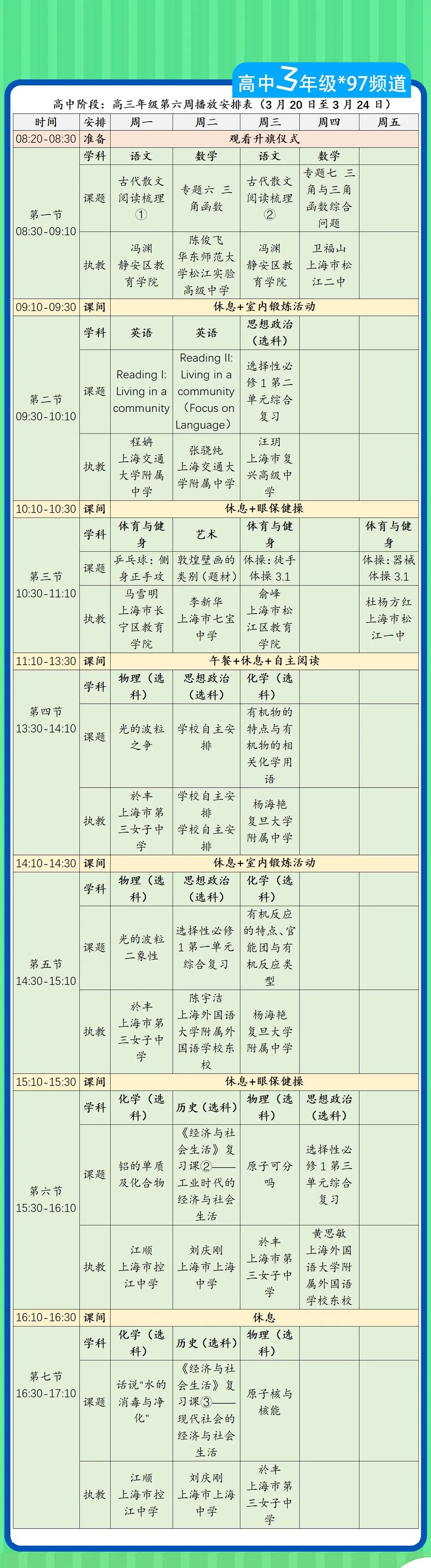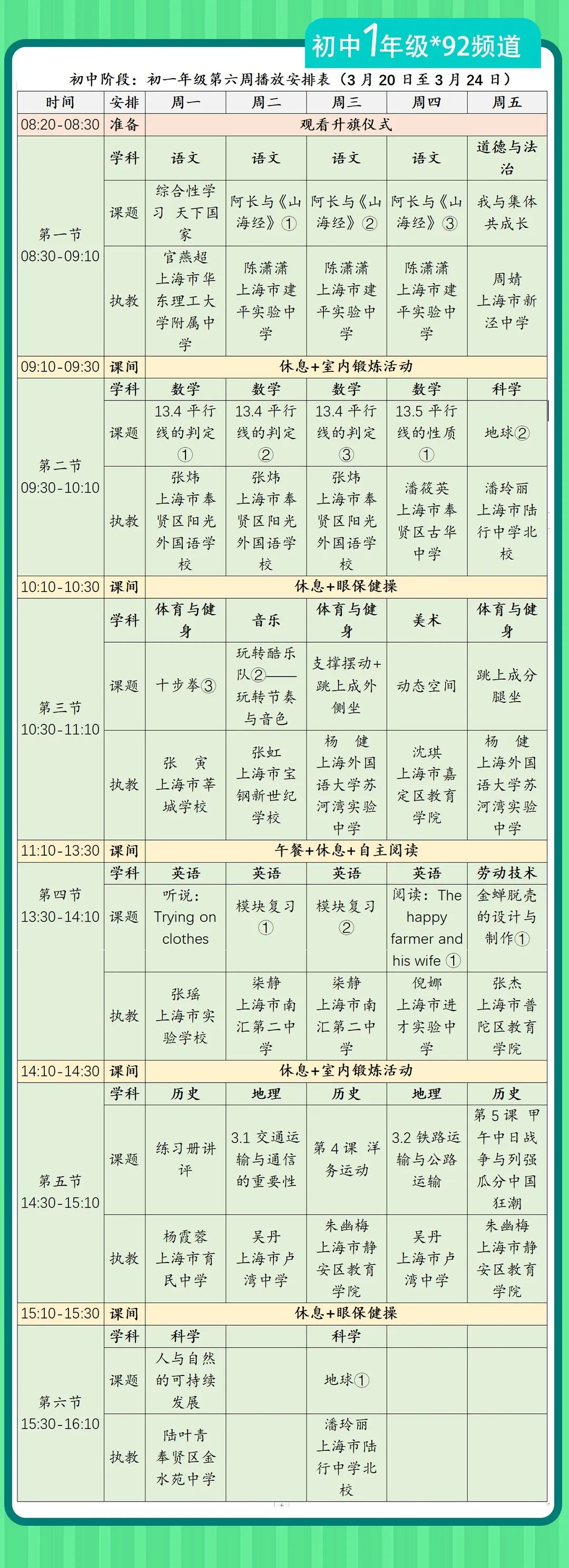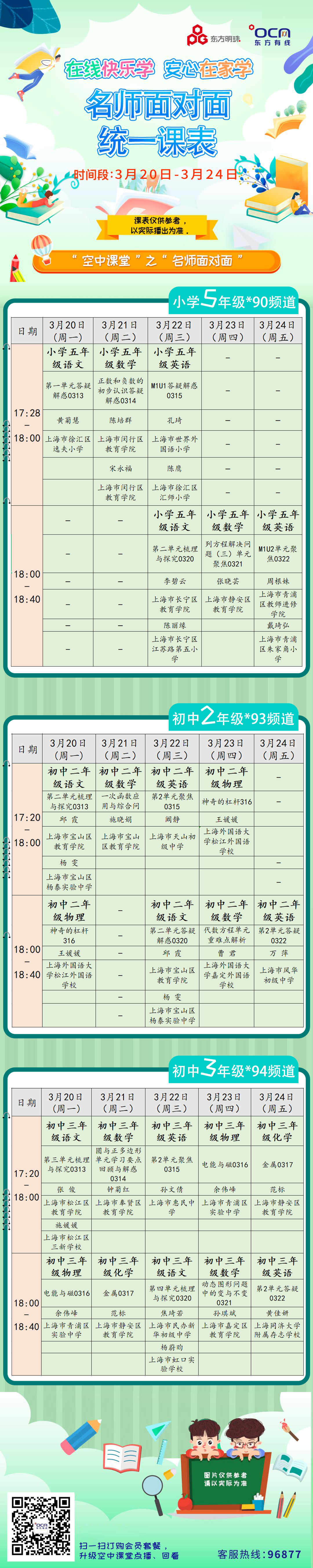 空中课堂丨空中课堂&名师面对面统一课表(3月20日-3月24日)!
