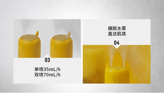 随场景变换,两种模式任意选择。单喷置于办公室桌面,缓解工作环境的干燥;双喷置于卧室,伴你甜睡一整晚。
