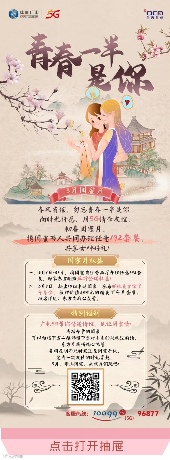 除了线下3月8日的活动,整个闺蜜月,有线君都为大家准备了特别的福利。