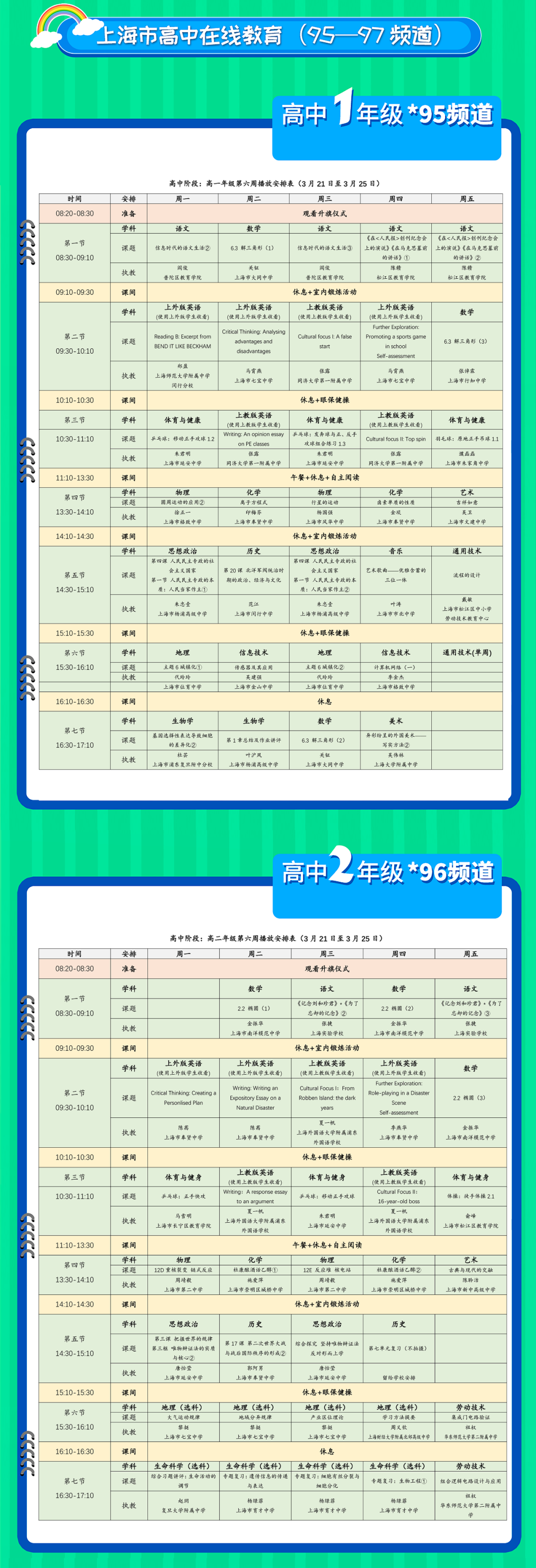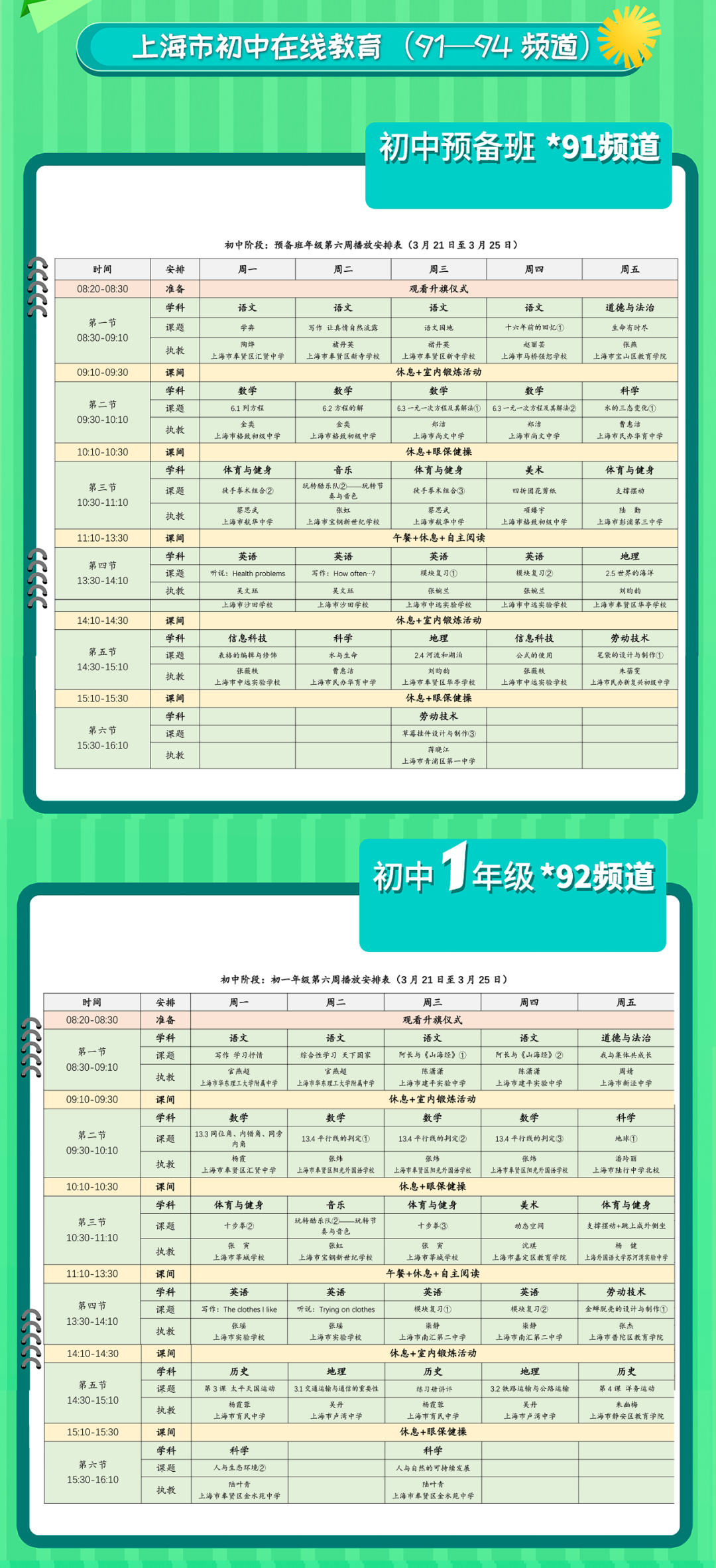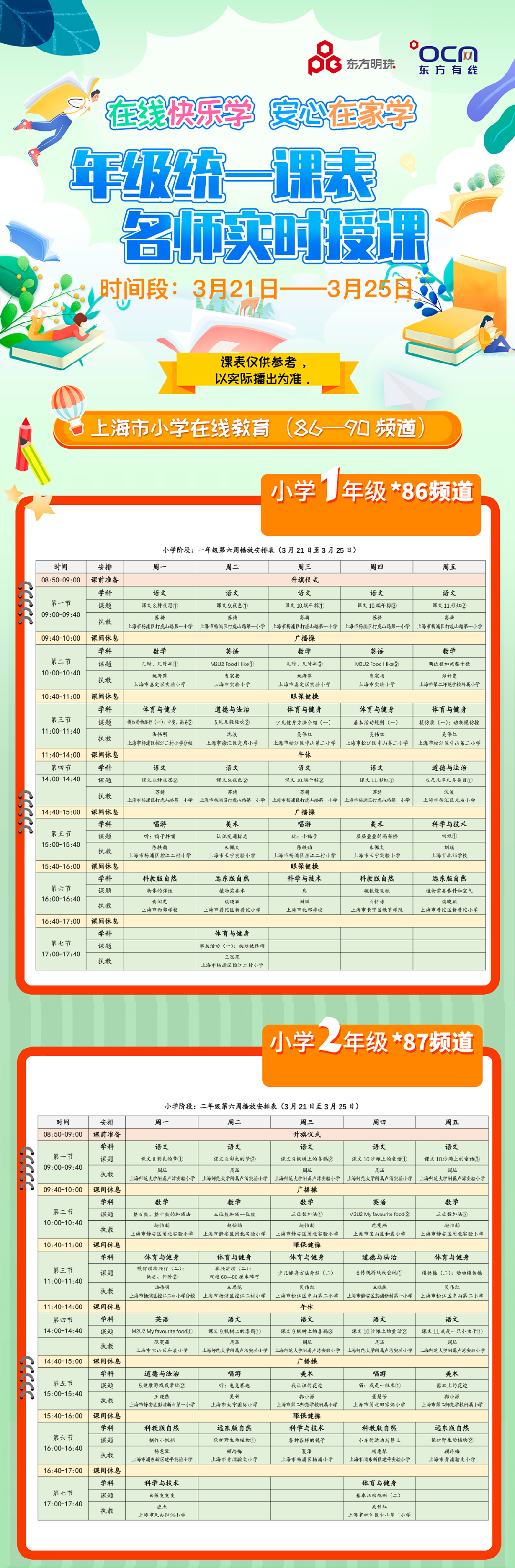 空中课堂年级统一课表出炉(3月21日——3月25日)!