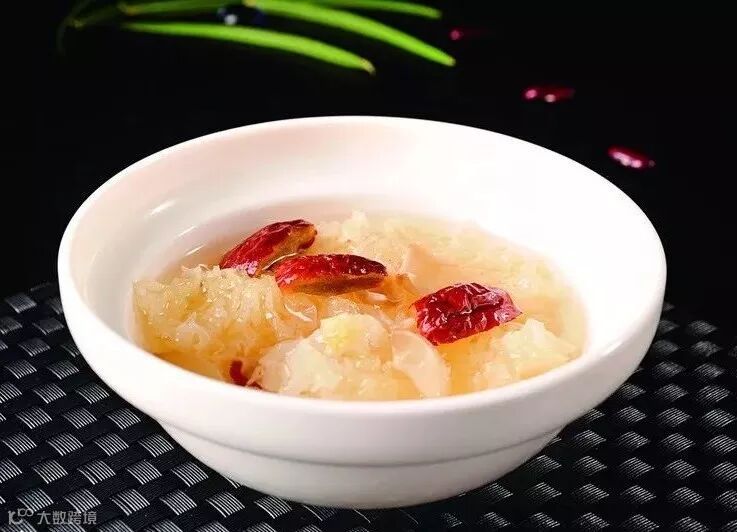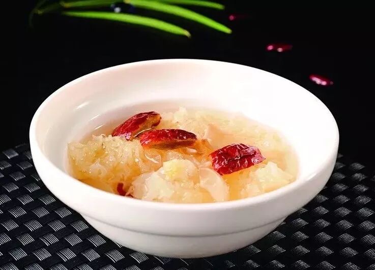 银耳红枣汤是用银耳、红枣、冰糖等材料煮制。红枣能补血,银耳能抗衰老、祛斑、美容润肤,还能增强免疫力。