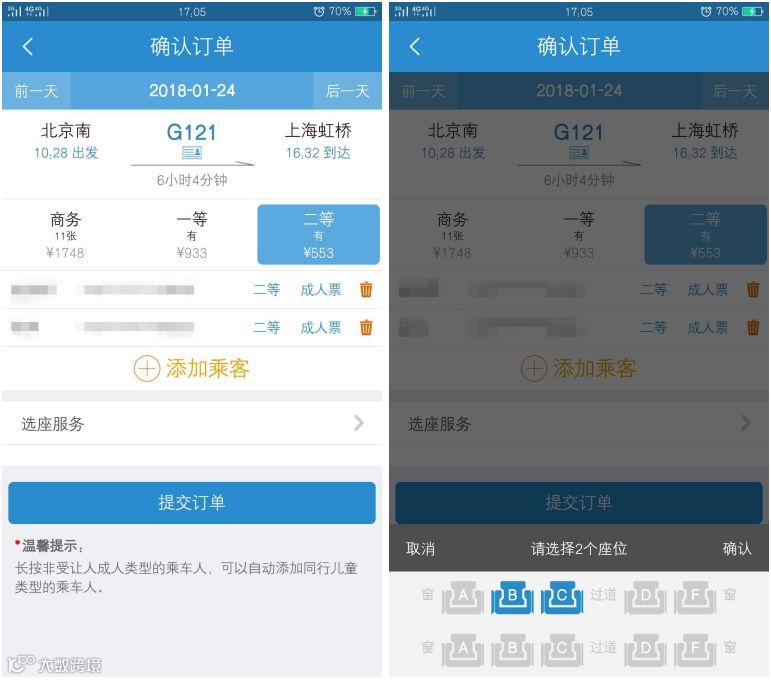 2017年10月12日起,12306网站支持C、D、G字头的动车组列车选座,但此功能仅提供相邻座位关系选择。如剩余车票不能满足需求,或不选择座席关系直接点击“确定”,系统将自动分配席位。