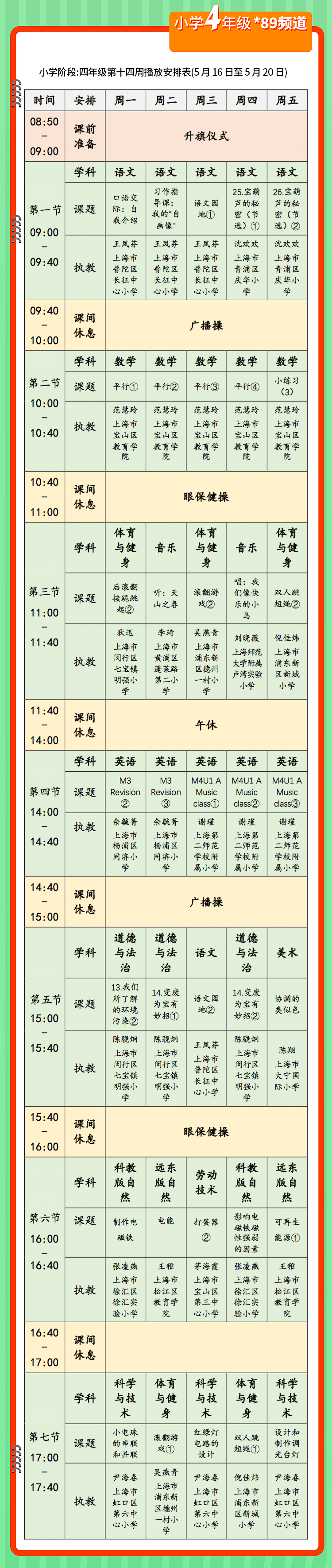 空中课堂丨空中课堂年级统一课表出炉(5月16日-5月20日)!