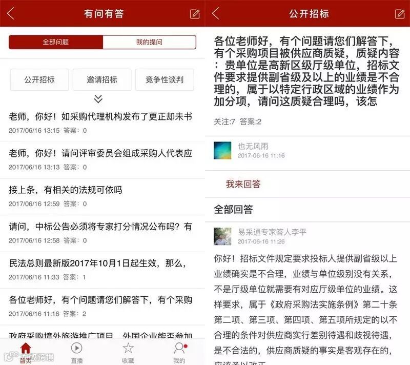 自易采通APP上线以来,“有问有答”频道就受到各方政府采购人士的喜爱,短短6个月时间,“有问有答”频道已收集了上百个政府采购一线人士遇到的疑难问题及专家同行给出的解决方案。
