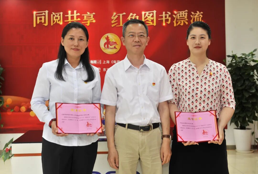 仪式上,首批参与捐赠图书的党支部,上海市委统战部宣传处党支部代表贺梦楚,和上海市城市排水有限公司机修安装设备工程党支部书记陶蓓,分别向主办方每周报社和东方有线捐赠红色书籍。徐俊亮为两家捐书单位颁发了捐赠证书。
