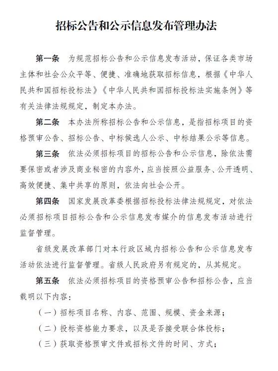 政府采购领域第一款APP易采通编辑从国家发展和改革委员会网站上了解到,为规范招标公告和公示信息发布活动,进一步增强招标投标透明度,保障公平竞争市场秩序,国家发展和改革委员会刚刚印发《招标公告和公示信息发布管理办法》(2017年第10号令,以下简称《办法》)。