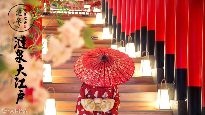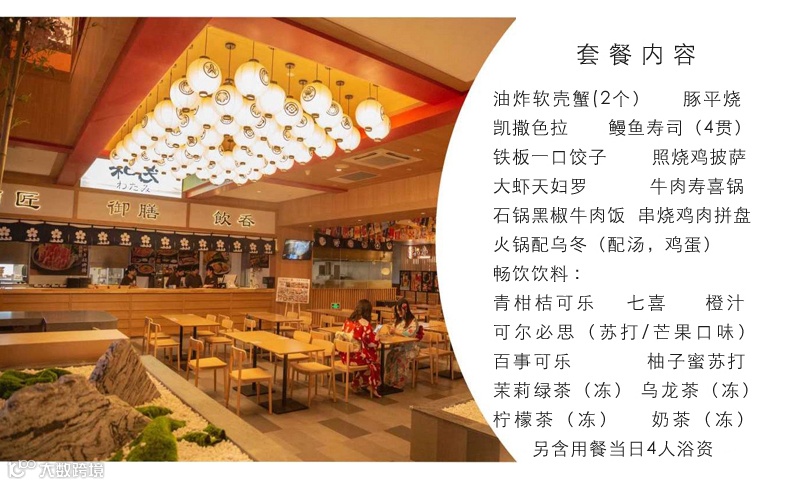 1.和风汤泉、日式街道、樱花树、榻榻米、儿童乐园、巨幕电影