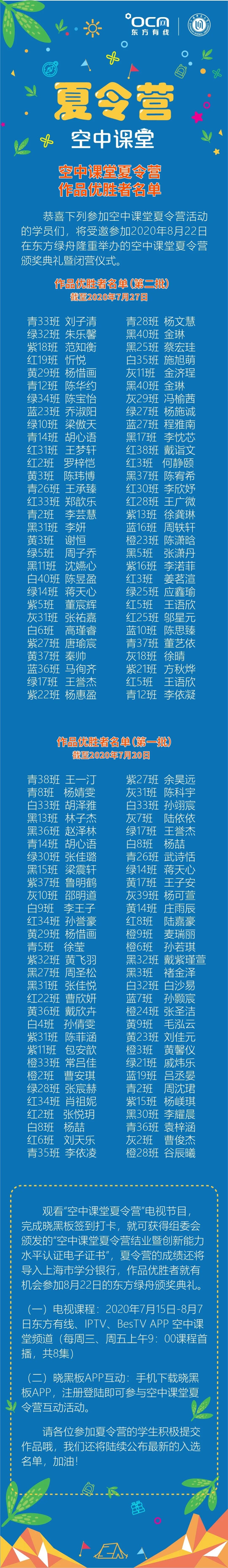 截止7月27日,已经新鲜出炉了两批空中课堂夏令营作品优胜者名单,小伙伴们,快来看看榜上有没有自己的名字吧!
