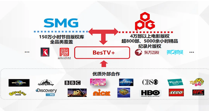 SMG先天拥有超过150万小时的强大节目版权库,内容全品类覆盖。东方明珠股份公司已累积4万部以上电影版权,拥有超800部、5000余小时的精品纪录片版权。SMG覆盖全品类的精品内容构成了BesTV+平台坚实的内容优势。