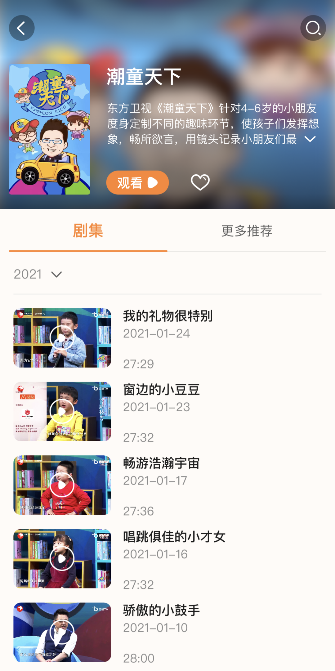 不管是主持人眼镜哥哥金炜的搞怪访谈或是棚外有趣的小任务都能使孩子们发挥想象,畅所欲言。这档专为4-6岁小朋友量身定做的访谈互动节目每每开播便能引发众多家长粉丝的关注与热议。