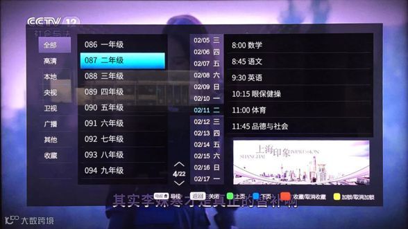 A:首先,因为有线电视上播出的是上海市教委统一制作的在线教学课程。其次,有线电视端网路传输安全稳定可靠,不会出现网络电视的卡顿、画质模糊等问题,对学生来说上课质量更有保障。第三,电视大屏的播出形式更贴近于学生们的真实上课环境,并能在一定程度上让学生远离手机等电子产品的干扰。