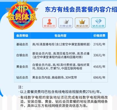 A:东方有线为上海市民提供基础、白银、黄金、钻石四种会员套餐,具体内容如下: