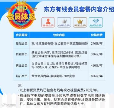 Q:东方有线的白银、黄金、钻石会员套餐是什么?