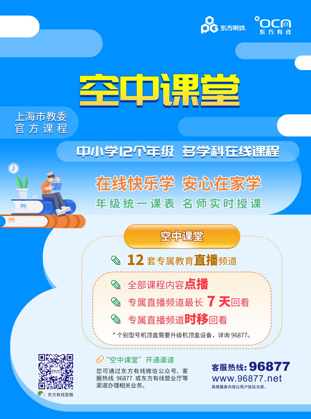 为了不影响广大学生的日常学习,上海市教委即将于3月2日起推出“空中课堂”线上教学项目,充分利用电视平台,开展线上教学。特殊时期做到停课不停学,努力恢复学生的学习生活。