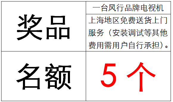 在中奖后三个工作日内,由东方有线服务热线 96877 联系中奖用户确认送货信息,后续由厂商安排派送服务,免费派送范围仅限上海地区(不含电视机安装)。