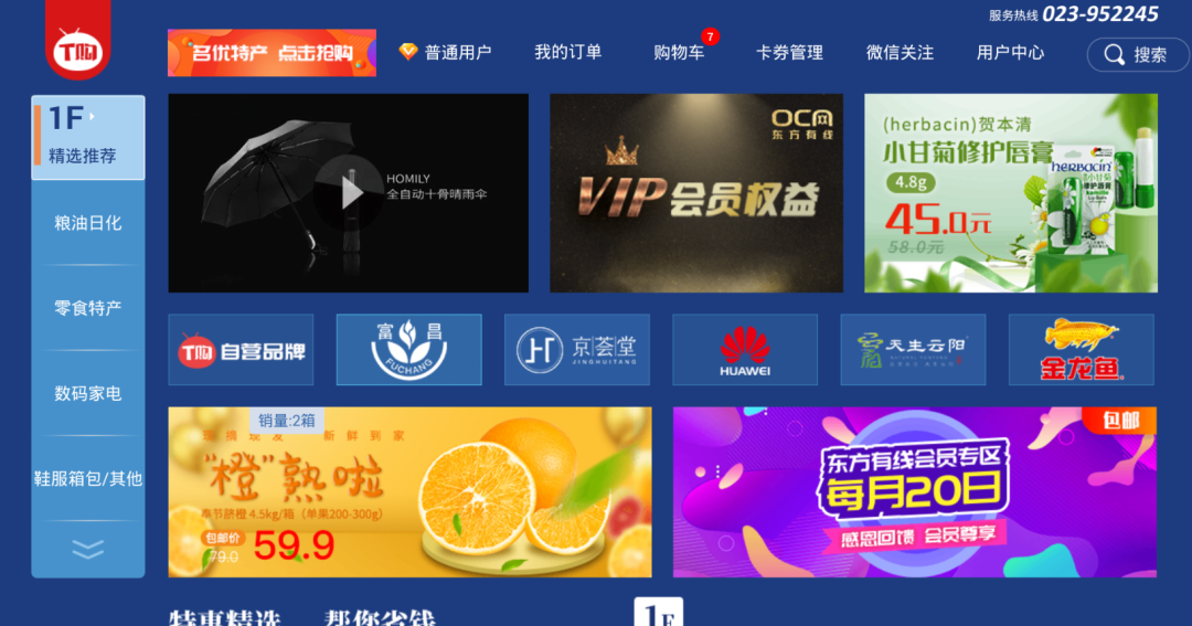 东方有线高清智能机顶盒用户打开电视—购物—TGO商城进入首页