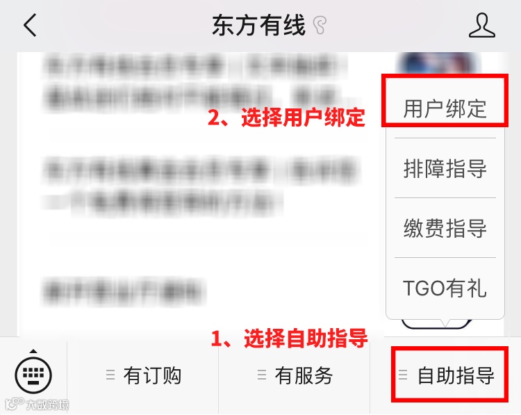 1)进入东方有线官微选择【自助指导】-【用户绑定】