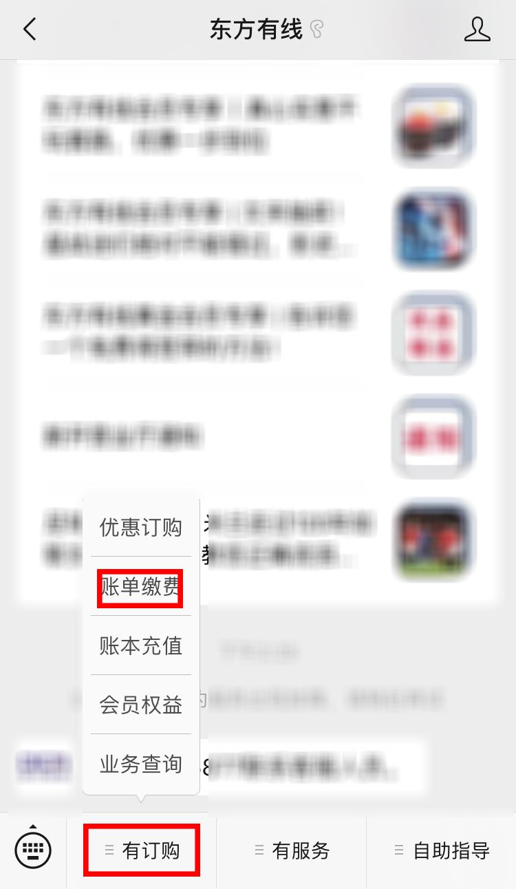 进入东方有线官微选择【有订购】-【账单缴费】即可。