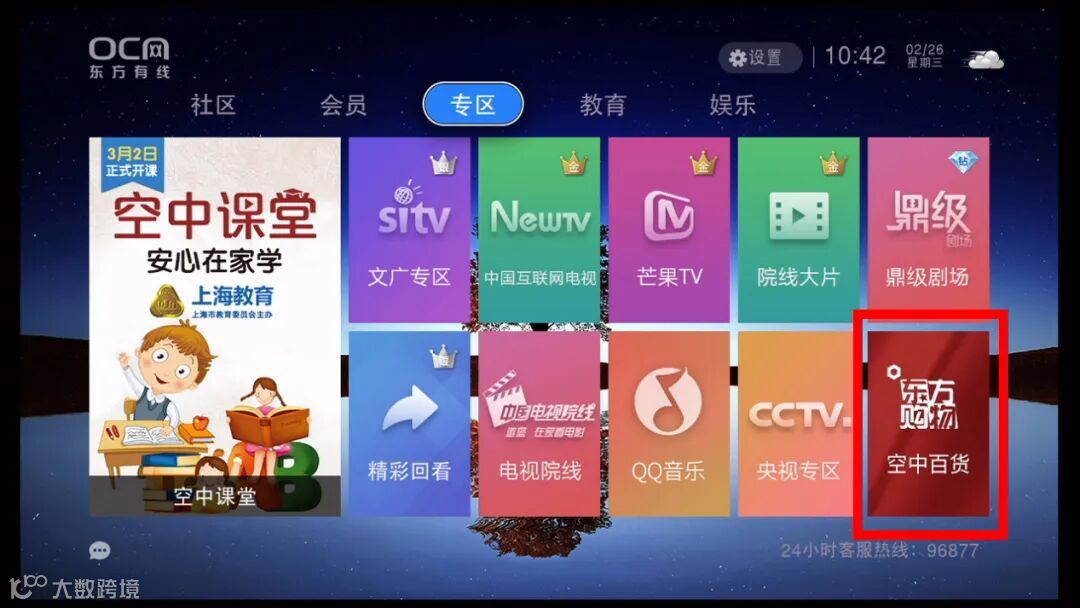 入口1:高清-专区页面——点击“空中百货”可进入
