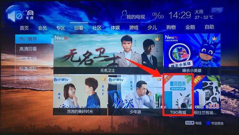 打开电视——购物——TGO商城