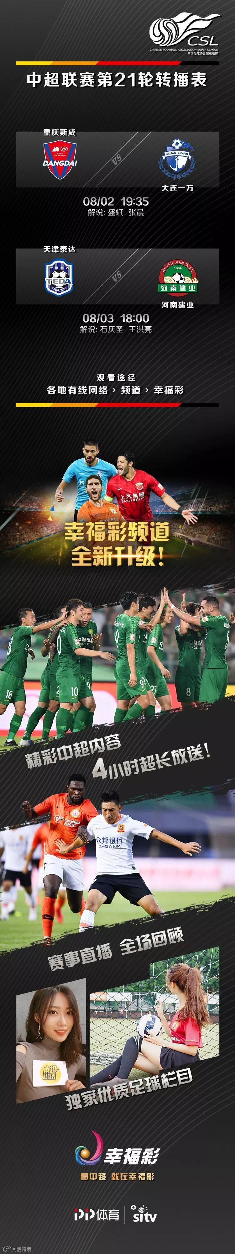 在幸福彩频道为您带来两场中超直播:
