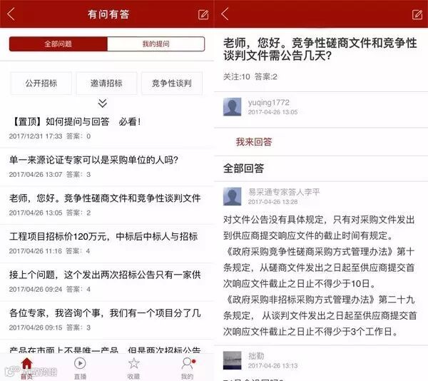 自易采通APP上线以来,“有问有答”频道就受到各方政府采购人士的喜爱,短短4个月时间,“有问有答”频道已收集了几百个政府采购一线人士遇到的疑难问题及专家同行给出的解决方案。