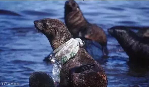 一只被塑料制品死死困住的海豹