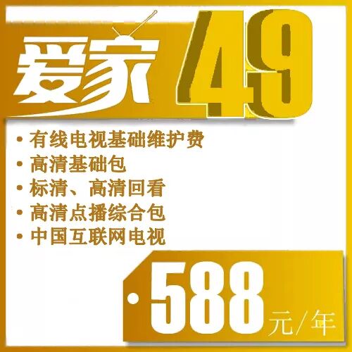 通过图片不难发现,爱家49套餐在39套餐的基础上,增加了中国互联网电视这个内容。